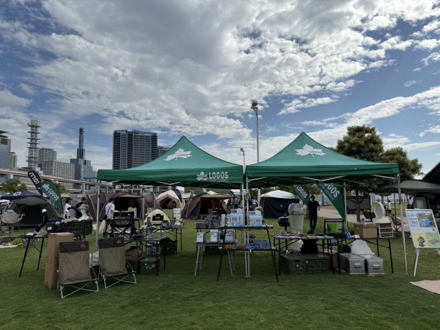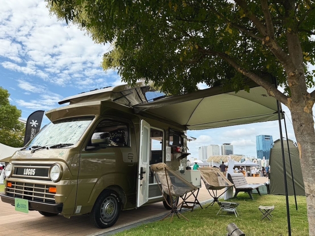 今回は、人気アウトドアブランドLOGOSさんの横でコラボキャンピングカーのAMAHO LOGOS EDITIONを出展しております!