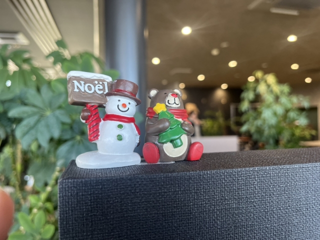 綺麗なクリスマスツリーやサンタの置物、入口入ってすぐの看板には大きなリボンなど、可愛らしい飾りつけが多数ございます!