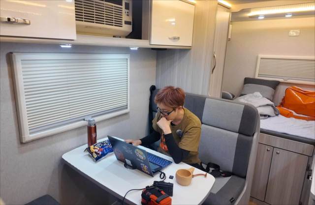 動画の撮影が終わり、「RISA」の車内に戻ってパソコン作業をしていましたが、DCクーラーも効いてて、ダイネットで快適に作業が進みました。
