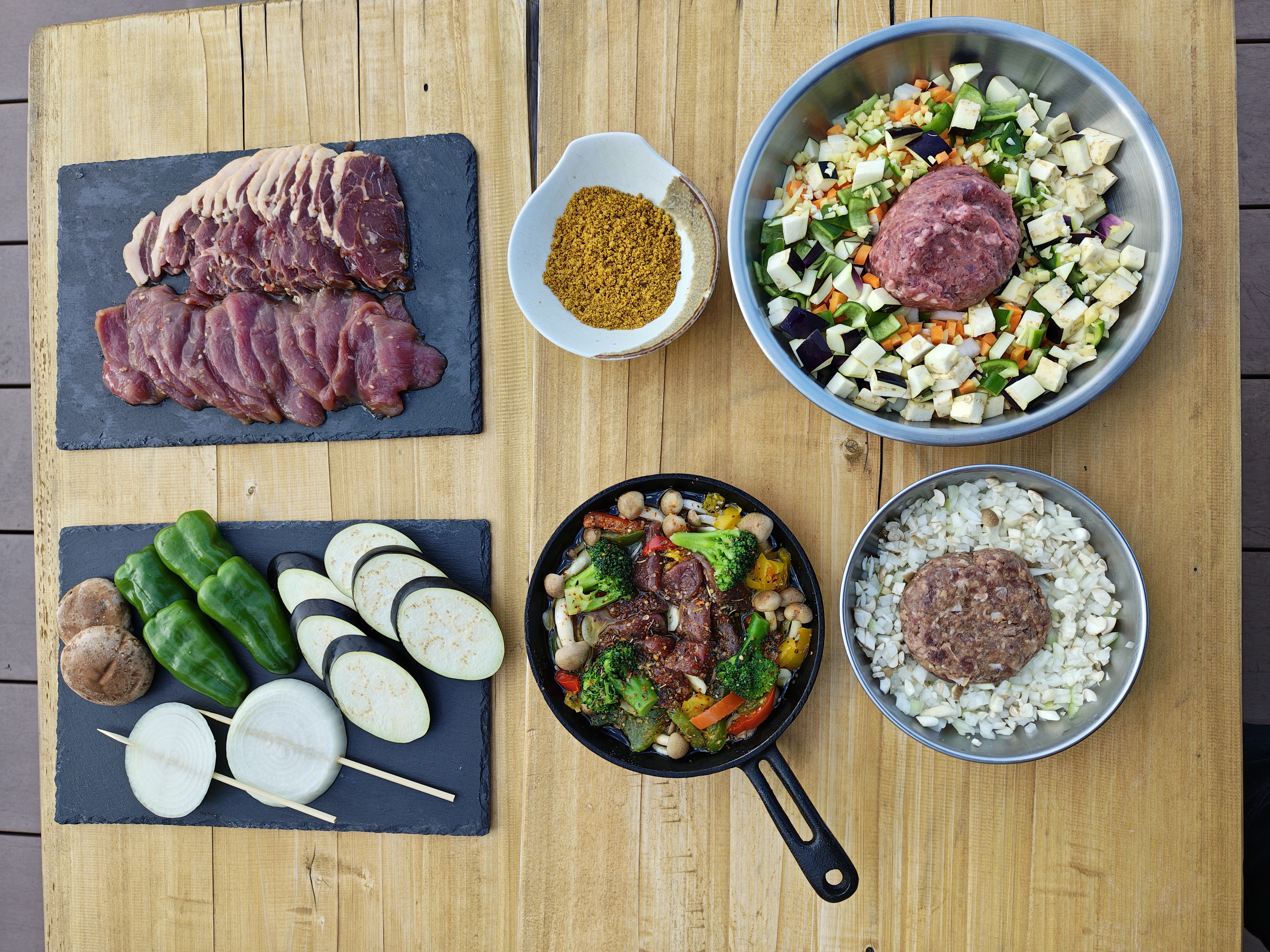 今回、事前にジビエBBQを予約しておりました。こちらが「猪鹿コース」です。(写真は2人前です)BBQと言っても、お肉だけでなくアヒージョやハンバーグ、ドライカレーもありました!