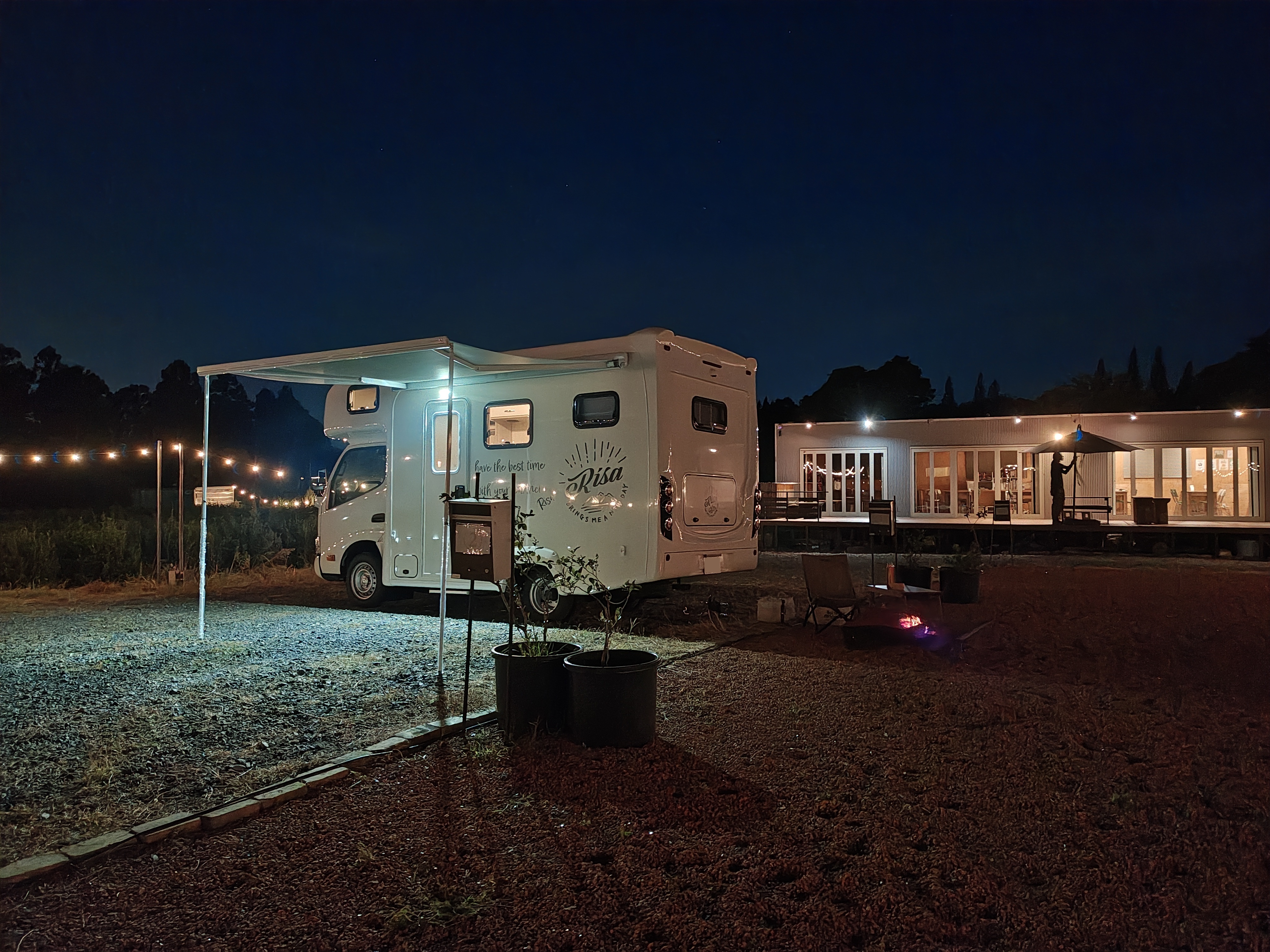 今回は、「ダイレクトカーズ」のシンプルなキャブコン「RISA」で実際にお出かけし、「RVパーク 猿田彦BASE」にて車中泊してきましたので、その様子をお届けします!