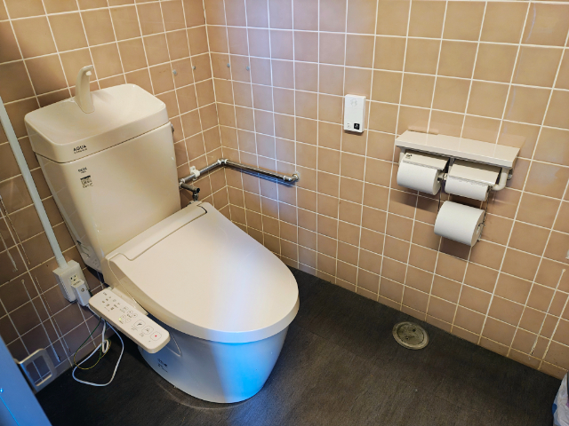 そして、トイレはウォシュレット付きの洋式です。女性トイレにはトイレ擬音装置も付いてますよ。トイレも広めに作られているので、お子様と一緒に入ることができます。