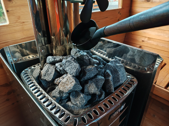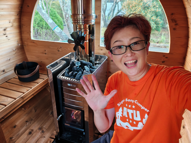 「オートパークガーデン白山」のサウナは、セルフロウリュウも楽しめます。ロウリュウの水にアロマを入れると水蒸気と共に香りも広がり、一気にリラックスできます!