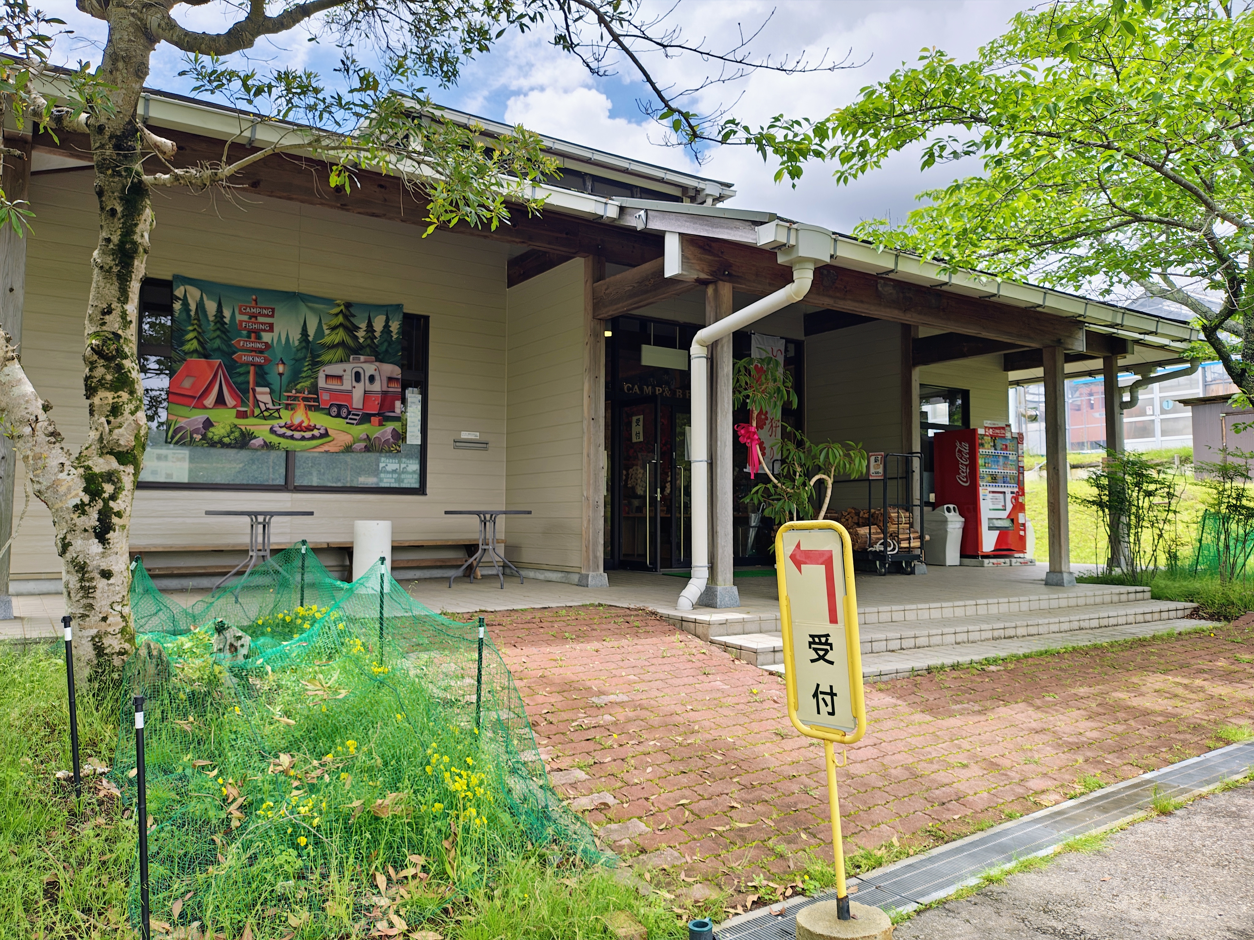 管理棟で受付し、サイトまでの道は桜並木です。春には桜のトンネルになるそうですよ!名前にガーデンと付けられている通り、場内には桜は200本以上、梅や藤棚、スイレンや金木犀など季節の花木を楽しむことができます。