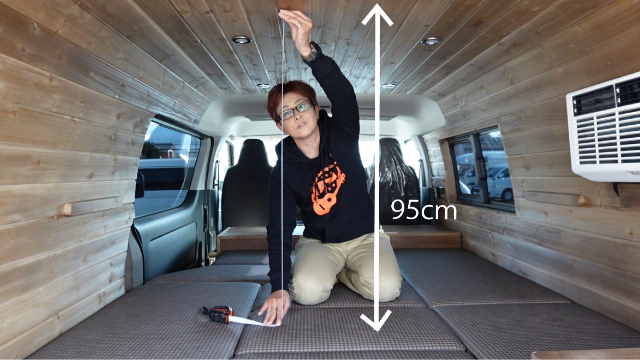 ちなみに、ベッドマットから天井までの高さは、95cmでしたよ。