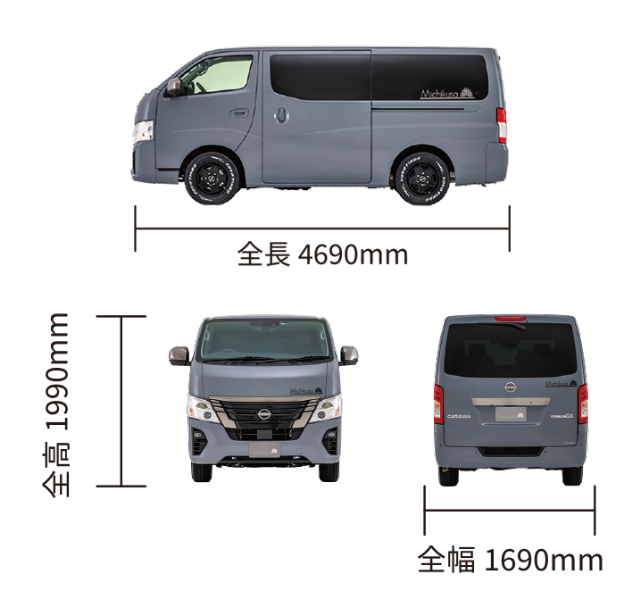 前回の「リトリート アニバーサリー2」に続き、今回ご紹介するバンコンは、日産キャラバングランドプレミアムGXをベースとした4人乗りの「Michikusa(ミチクサ)」です。