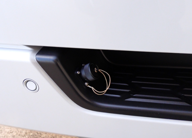 5ドアなので運転席側にもスライドドアがあり、リアゲート部分に外部電源がつきます。