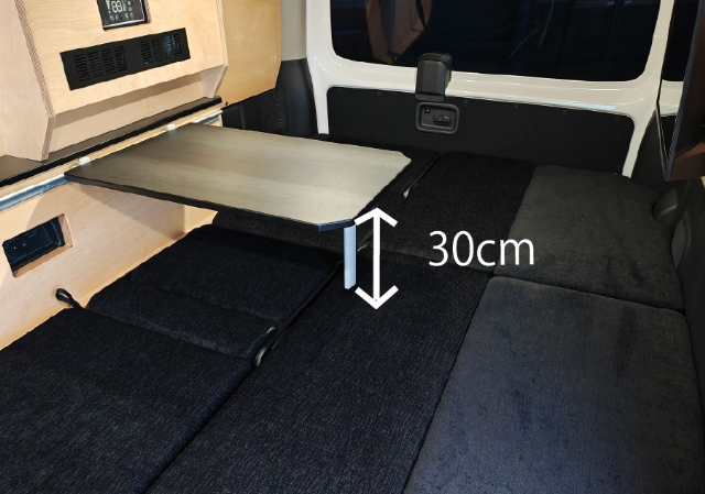 そして、ベッド展開した際にもテーブルが使えます。ちゃぶ台のような感じで使えるんです!その場合のテーブルの高さは30cmです。