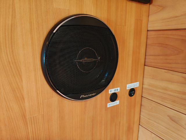 続いて、助手席側の装備です。100Vコンセントが2口ありますので、屋外で家電を使いたい時に便利ですね!