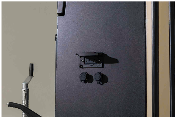 ボディ左側、エントランス横に連行コンテナとスチールボックスが備え付けられています。