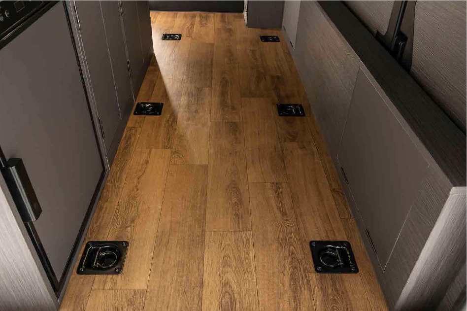 フロアには床埋め込みフックが取り付けられているので、積み込んだ荷物を固定するのに利用できます。