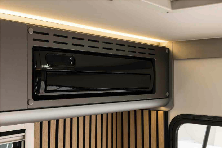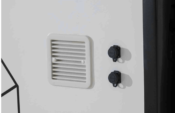 天井近くにコンパクトなDCクーラーを設置。