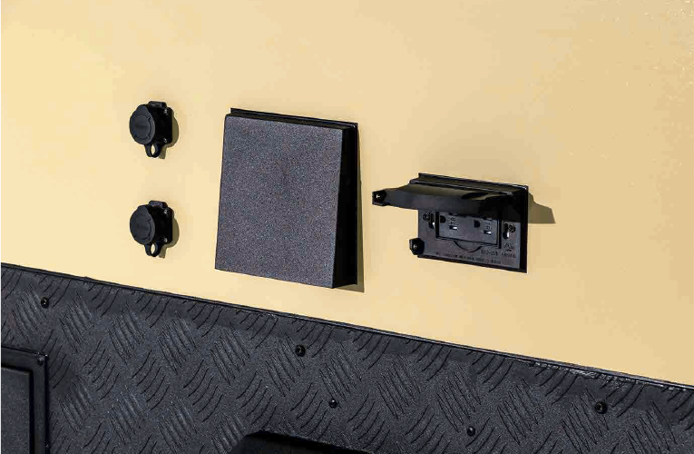 外部電源入力ポートに加えて、サブバッテリーの電気を出力する外部出力ポートも設置。