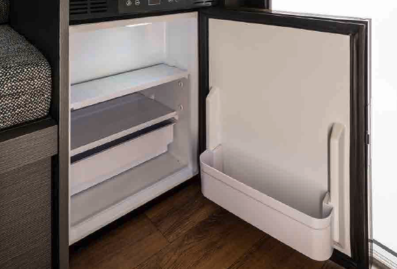 大型冷蔵庫をリア右サイドに設置。