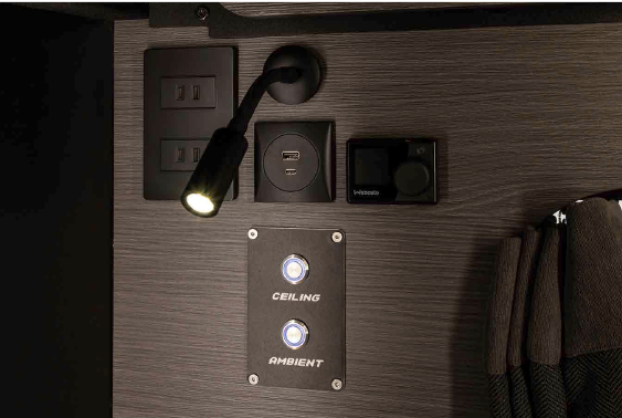 手元照らすブックライトや各種コンセント。